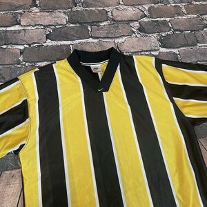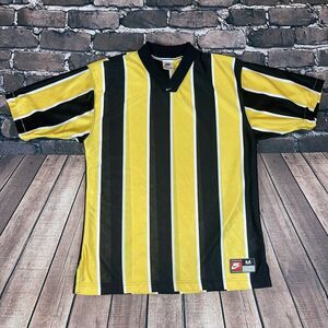 Vintage Nike Soccer Jersey Yellow Black Striped Center Swoosh Size M 90s Team