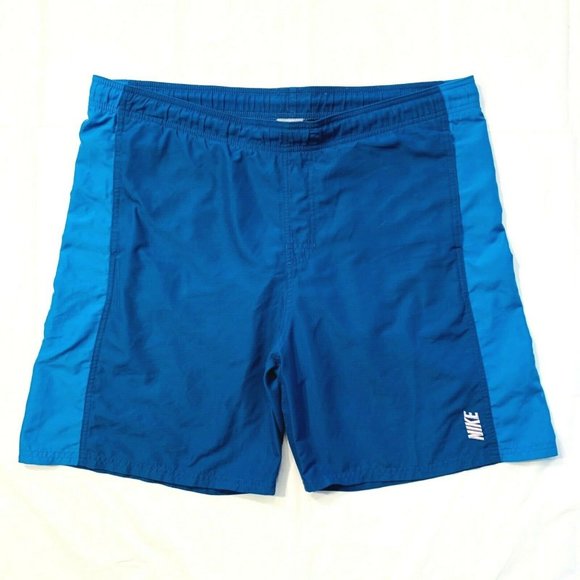 Vintage Nike Spell Out Swim Trunks Board Shorts Mesh Lined Mens Large Blue EUC
