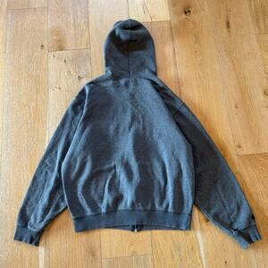 Classic vintage Nike Sportswear zip-up hoodie in grey, men’s size M. Features bold spellout logo across the chest and a naturally distressed look for authentic vintage style. Soft, comfortable fit—perfect for streetwear, layering, or collectors of retro Nike gear.