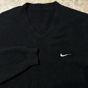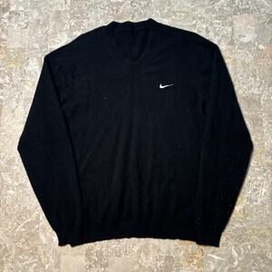 Vintage Nike Sweater Mens Large Black 100% Cashmere V Neck Vintage Distressed