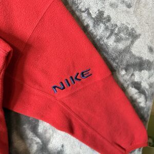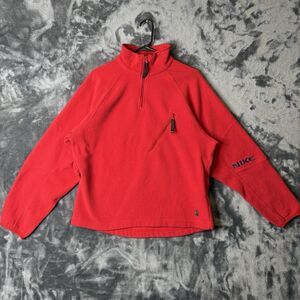 Vintage Nike Sweater Mens Small Red Fleece Oversized 1/4 Zip Silver Tag Y2K