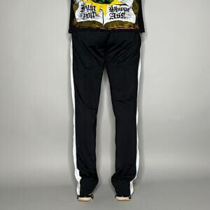 Vintage Nike Sweatpants Black Polyester Light Blue Swoosh Flared Silver Tag Y2K
