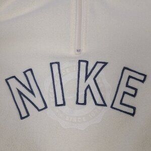 This product is a vintage Nike sweatshirt for women in size small. The sweatshirt is yellow with a solid pattern and features a Nike spellout logo in gray fleece fabric. It has a crew neck and long sleeves and is made of cotton fleece material. The sweatshirt is machine washable and has a regular fit. It is a pullover style with graphic print accents and is suitable for all seasons. The sweatshirt is part of the Nike Sportswear product line and has a USA and sports theme.