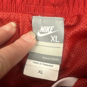 Vintage Nike Swim Shorts Mens XL Trunks Red Spellout Swoosh Back Logo Mesh Lined
