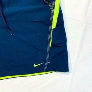 Vintage Nike Swim Trunks Board Shorts Mesh Brief Lined Swoosh L Blue Green EUC