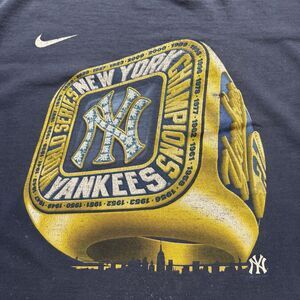 Vintage Nike Swoosh New York Yankees MLB Ring Art Navy Tee Shirt Sz XL Thrashed