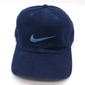 Vintage Nike Swoosh Strapback Hat Dad Ball Cap Blue Embroidered Center Check