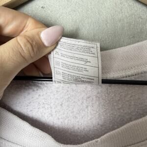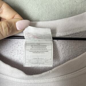 In fair preowned vintage condition. This sweatshirt is a vintage item and its wear reflects that. It has some snags and holes, there are dark discoloration spots and a light pink hue to it.