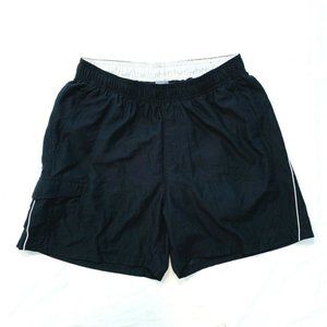 Vintage Nike Swoosh Swim Trunks Board Shorts Mesh Brief Lined XL Black EUC