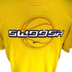 Vintage Nike Swoosh T-Shirt Men XL Yellow 100% Cotton Crew Neck Pullover Classic