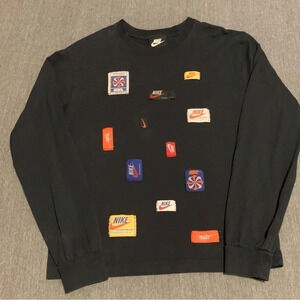 Vintage Nike Tags ICON CLASH LONG SLEEVE CREW NECK TOP BLACK 2008 XS RARE HTF