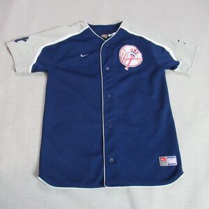 Vintage Nike Team Jersey Boys XL Navy New York Yankees #2 Derek Jeter MLB Button