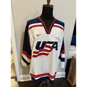 Vintage Nike Team USA Hockey Jersey White Red Blue Size Large Made in Korea