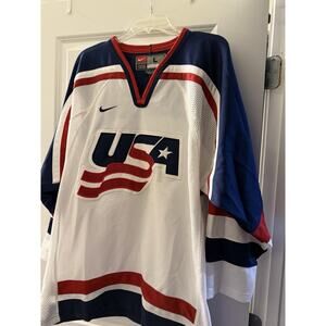 This Nike Team USA hockey jersey is an iconic piece of early 2000s hockey and Olympic history — a great find for collectors or fans of vintage Nike sportswear. Perfect for display, skating, or game-day wear.