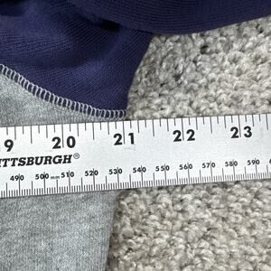 This Vintage Nike ‘The Athletic Dept’ Zip-up Hoodie in size Medium features a geometric pattern in gray and purple colors. Made of cotton, this long sleeve hoodie has a collared neckline and a full zip closure. With athletic fit and a hooded design, it is perfect for gym and training activities. The hoodie also includes pockets for added convenience, making it a versatile piece suitable for any season.