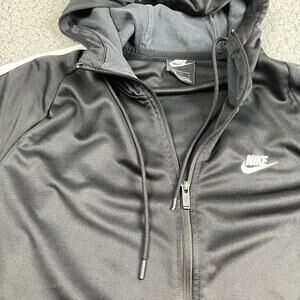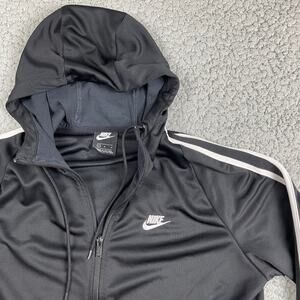 Vintage Nike Track Jacket Mens L Black White Stripe Full Zip Active Y2K Hooded