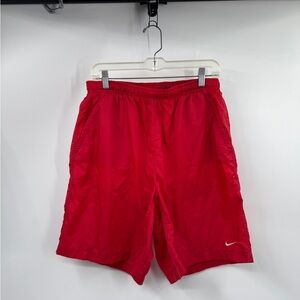 Vintage Nike Trunk Shorts L Red 90s Swoosh Mesh Lined Nylon Swimwear Running Y2K