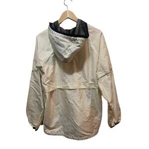 Vintage Nike women's white 3M reflective windbreaker jacket 90s coat pullover hooded sz med retro style. great for an extra layer and for running in low light. classic nike windbreaker in euc no stains or rips