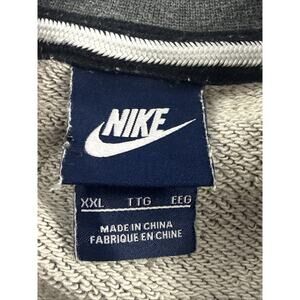 This Vintage Nike Y2K Crewneck Sweatshirt in gray with stripes is a stylish and comfortable choice for men in size XXL. Made from a fleece fabric blend, this pullover sweatshirt features a crew neckline and long sleeves, making it perfect for the winter, fall, and spring seasons. The Nike logo accents add a touch of retro charm, while the solid pattern and graphic print give it a unique and colorful look. Easy to care for with machine washable instructions, this sweatshirt is a nostalgic addition to any wardrobe, ideal for gym training and casual wear.