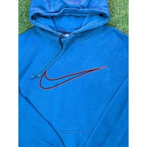 Vintage Nike Y2k Mens Size Medium Teal Blue Big Swoosh Logo Hoodie Sweatshirt