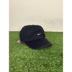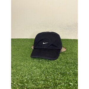 Vintage Nike hat cap strap back black white running swoosh adjustable mens 90s
