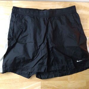 Vintage Nike Small Swoosh Logo Striped Wind Shorts Athletic Running, Side Pockets, Size Large - Measures Elastic Waist(Flat)=15" Inseam=5" Front Rise=13" - Excellent Condition, No Flaws