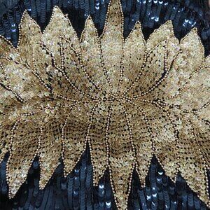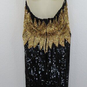 Vintage Nikhil Womens Large Silk Black Gold Sequin Beaded High Neck Dress NEW