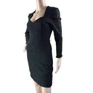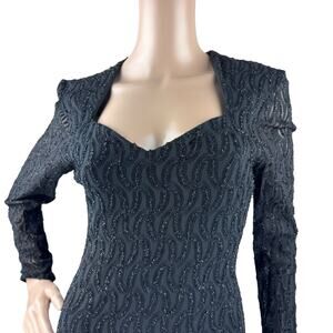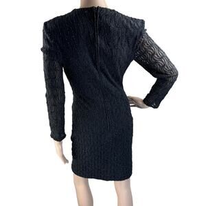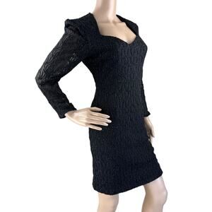 Vintage Niki 80s 90s Black Mesh Queen Anne Neck Long Sleeves Bodycon Dress 8