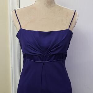 The Vintage Niki By Niki Livas Blue Floor Length Gown Size 12 is a stunning Y2K era dress perfect for a Friends prom or gala. This sleeveless gown features a square neckline and a zip closure, made from polyester jersey fabric in a solid blue color. The maxi dress is lined and embodies themes of weddings, princesses, and vintage aesthetics, making it a timeless piece for any season. Made in Hong Kong, this elegant gown has a preppy and retro flair that will surely make a statement at any party or cocktail event.