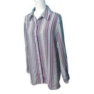 Vintage Nikki Strips Loose Button Down Long Sleeves Shirt Pink Gray Black Size L