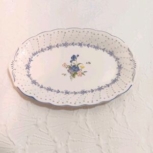 Nikko Blue Peony Oval Relish/Butter Dish is a vintage piece made in Japan, featuring a beautiful blue peony pattern on porcelain with a dotted bl This elegant platter is perfect for all occasions suitable for serving food relish and butter. Is oven, microwave, and dishwasher safe for easy use and cleaning. Approx. 9" long 6"wide. Blue and white floral design, central peony motif, with a dotted blue border and scalloped edge. Excellent vintage condition "No chips, cracks, or crazing" 2 available.
