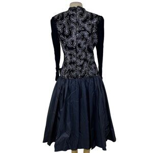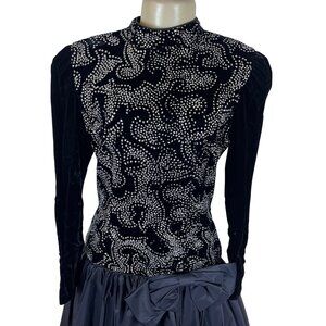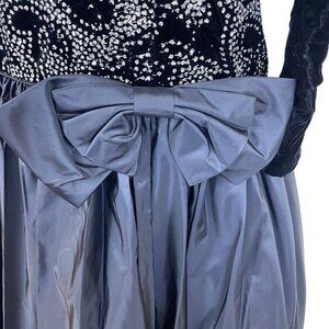 Vintage Nili Martin Womens Black Velvet & Taffeta Gown Dress With Sequins Sz 10
