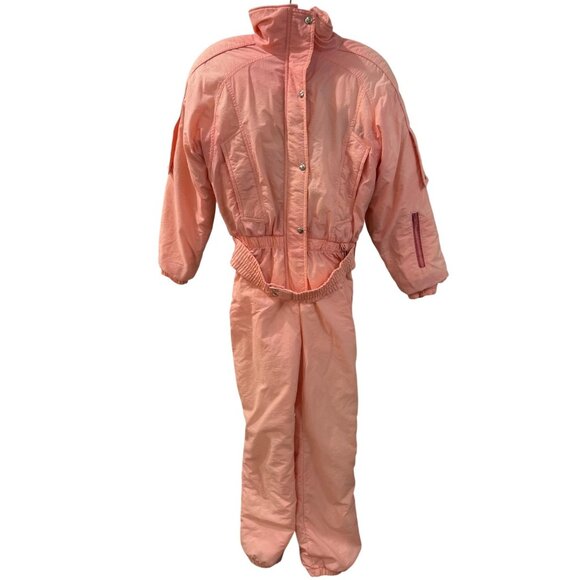 Style: Retro 1980s ski snow suit ideal for vintage winter sports or apres-ski wear.