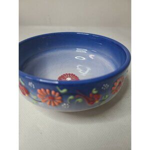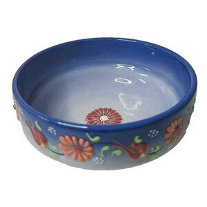 Vintage Nimet Turkish Tulip Floral Blue Ceramic Bowl Hand Painted Textured