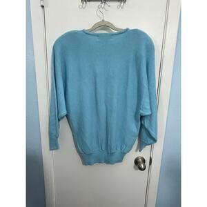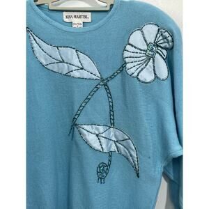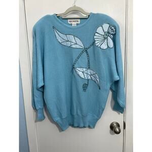 Vintage Nina Martini Sweater Small Blue Floral Embroidered Beaded Grannycore