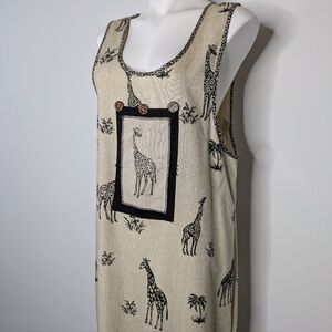 Vintage Nina Piccalino cream black giraffe novelty print sleeveless dress 12