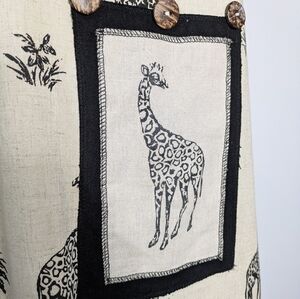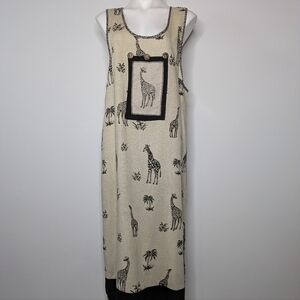 Vintage Nina Piccalino cream black giraffe novelty print sleeveless dress 12. Maxi dress. Small red stain on shoulder and one small stain on the bottom front, haven't tried removing (see photos). Material unknown as the tag has a typo.