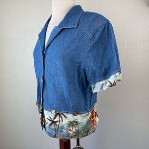 Vintage Nina Piccalino Hawaiian Denim Style Button Down Shirt Size 10 EUC