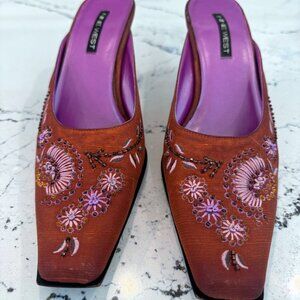 Vintage Nine West Fabrice Mules Orange fabric with embroidery Size 10