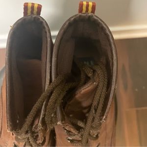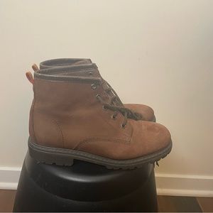 Nubuck leather lug sole vintage 90's boots by Nine West. In great vintage condition, only flaw I'm seeing is some light wear around the top of the boot (see photo).