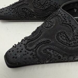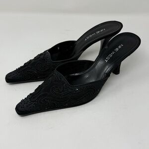 Vintage Nine West Mule Womens 8.5 Black Beaded Kitten Heel Pointed Toe 90s Y2K Fairy Core