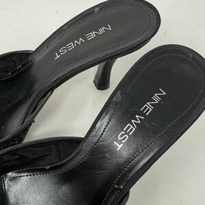 Vintage Nine West Mule Womens 8.5 Black Beaded Kitten Heel Pointed Toe 90s Y2K