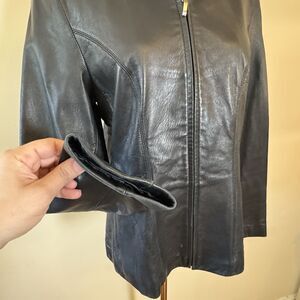 Vintage Nine West Soft Leather Jacket Women's Medium Zip Front Pockets Black