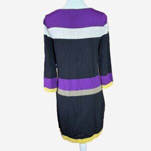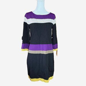 Vintage Nine West Striped Sheath Dress Women’s Size S Purple Black White Yellow