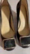 Nine West vintage black leather fur silver buckle block work career slip on heels. Sz 8