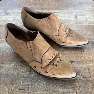 Vintage Nine West Nubuk leather tan western cowboy booties 7.5