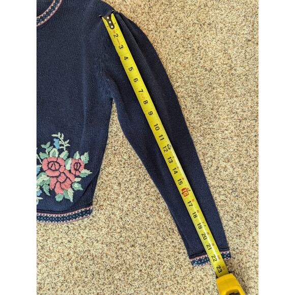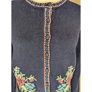 Vintage Ninon de Lenclos Floral Embroidered Cardigan Sweater Skirt Set Sz Small