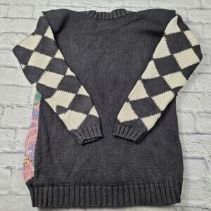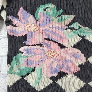 Vintage Ninon de Lenclos Floral Embroidered Harlequin Sleeve Sweater size Small