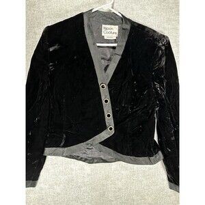 The Vintage Nipon Couture 2 Piece Midi Skirt Suit in black velour is a stylish and sophisticated choice for women looking for a classic and timeless outfit. The set includes a flattering midi skirt and a tailored blazer, perfect for a sharp and chic look. Made from rayon fabric, this suit exudes elegance and quality, making it a versatile piece that can be dressed up or down for various occasions. The vintage design adds a touch of retro charm, making it a unique and timeless addition to any wardrobe.