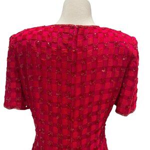 vintage, Nipon Night, red sequin dress, formal wear, cocktail dress, size 8, short sleeve, checkered pattern, elegant dress, evening wear, party dress, silk dress, lined dress, sequined formal dress, wedding guest dress, gala dress, cocktail party outfit, timeless fashion, retro style, special occasion dress, bold red dress